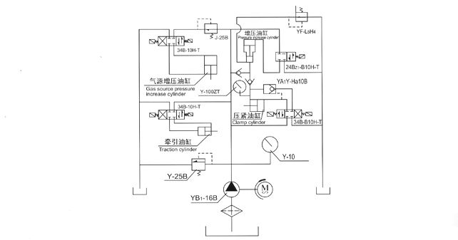 本機由液壓系統(tǒng)、機械部件,電器控制及多極氣源升壓裝置系統(tǒng)等部件組成。液壓系統(tǒng)是本試驗臺的動力主源。用于各類液壓缸和機械件驅(qū)動執(zhí)行功能。試驗面夾爪由液壓缸直接驅(qū)動執(zhí)行,軸向夾緊壓力是按閥門試驗壓力等級不同進行調(diào)節(jié)增壓(最高液壓增壓壓力31 5MPa)。各夾爪受力均,夾緊可靠。徑向移動由液壓缸傳動執(zhí)行,各夾爪進退同步,靈活自如,確保通徑大小不同閥門的測試。多極氣源升壓裝置是利用液氣聯(lián)動增壓。增壓范圍0.6—32 0MPa,用于閥門介質(zhì)壓力試驗。氣源升壓工作設有自動和手控二種操作選擇,當選用自動升壓工作時,工作人員可以近距離離開操縱臺觀察現(xiàn)場試驗情況。
