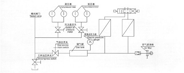 本試驗臺在氣源升壓使用中安全設施由氣源增壓調(diào)節(jié)閥控制升壓,電接點壓力表指定停機。