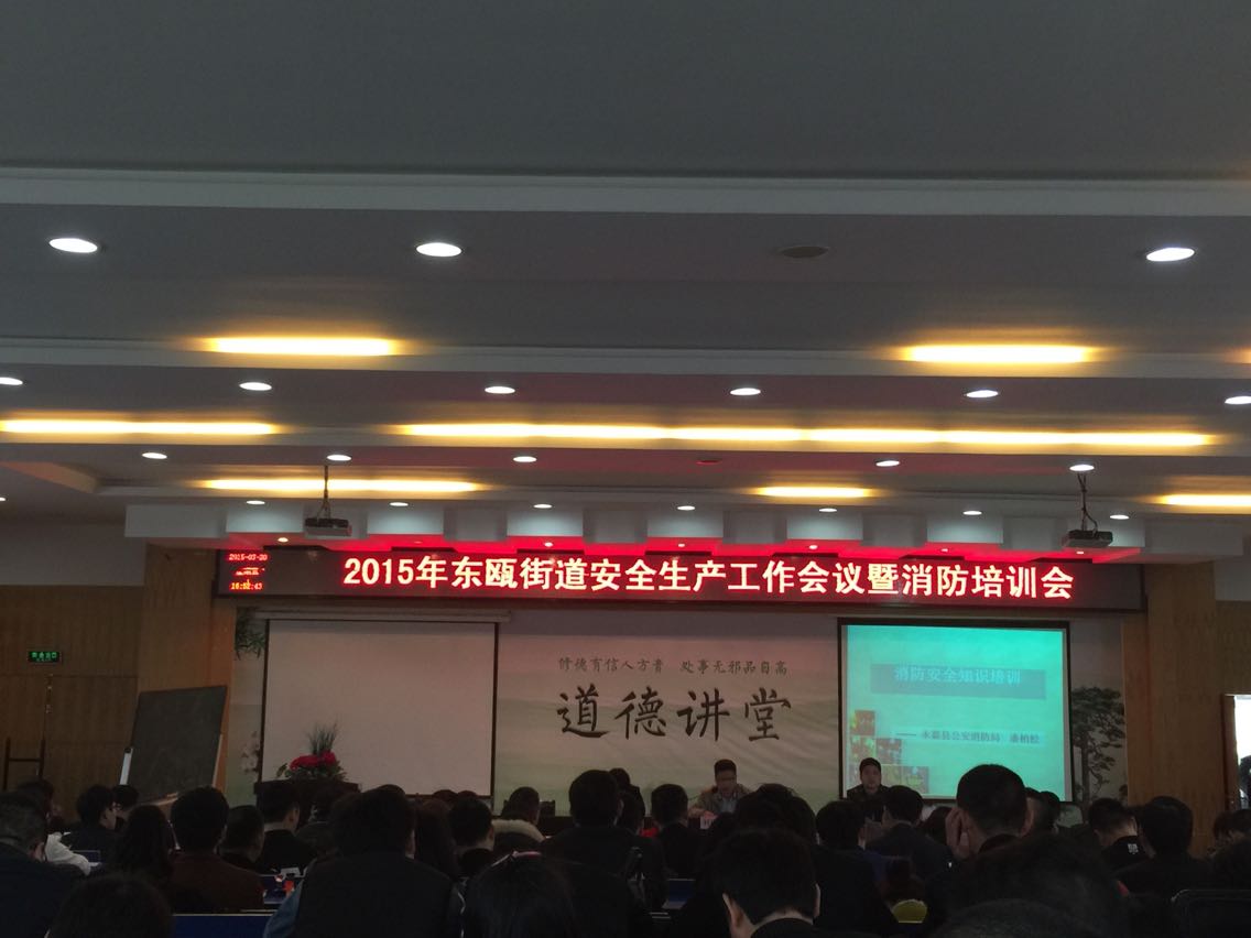 3月21日東甌街道(永嘉東甌工業(yè)園區(qū))安全生產(chǎn)工作會議暨消防培訓(xùn)會在東甌工業(yè)園區(qū)舉行,本次會議有東甌街道黨委副書記主任杜國平主持,工業(yè)園區(qū)副主任做去年工作報(bào)告和今年的工作重點(diǎn),園區(qū)副書記朱琳哲重點(diǎn)對消防的重要性、消防預(yù)防步驟、事故案例等做了詳細(xì)的介紹和分析,并囑咐個企業(yè)負(fù)責(zé)人和主管部門嚴(yán)把安全生產(chǎn)關(guān),定期做安全檢查,對達(dá)不到安全生產(chǎn)標(biāo)準(zhǔn)的部門和企業(yè)馬上整改,做到萬無一失。