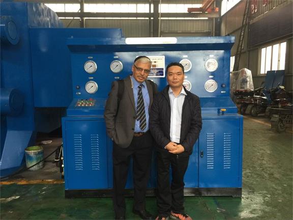 近日,印度(IVC)閥門公司INDIAN VALVE PVT.LTD總裁Mukherjee先生親自來浙江優(yōu)機機械科技有限公司驗收1月份定制的蝶閥、球閥試驗臺,這次訂購的設備是優(yōu)機公司國家專利產品:ZL 2014 2 0194312.6,液壓系統(tǒng)合理節(jié)能,操作人性化設計,是1月份該閥門公司技術部經理Tomy 先生來中國實地考察各大廠家生產工藝及企業(yè)資質后精心篩選確定下來的采購設備,這次采購的設備是代替IVC公司原有老式閥門測試臺主要水壓和氣壓試驗16”-32”的蝶閥和球閥。
